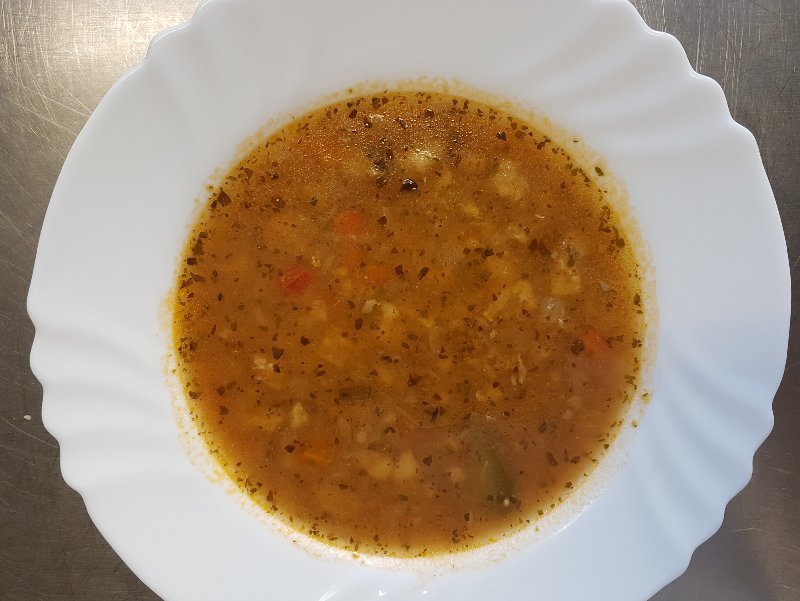 Polévka zeleninový vývar s játrovým kapáním :