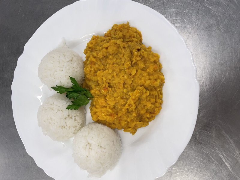 Indická čočka Dhal [6, 12] rýže jasmínová, ovoce